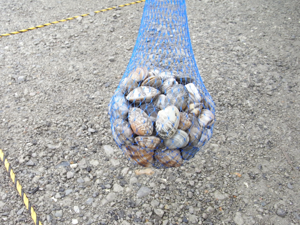 潮干狩り会場の中で販売している1Kgで600円の網を2つ買って1,200円だったので、計り販売(100gで60円)に比べても900円もお得(・。・)